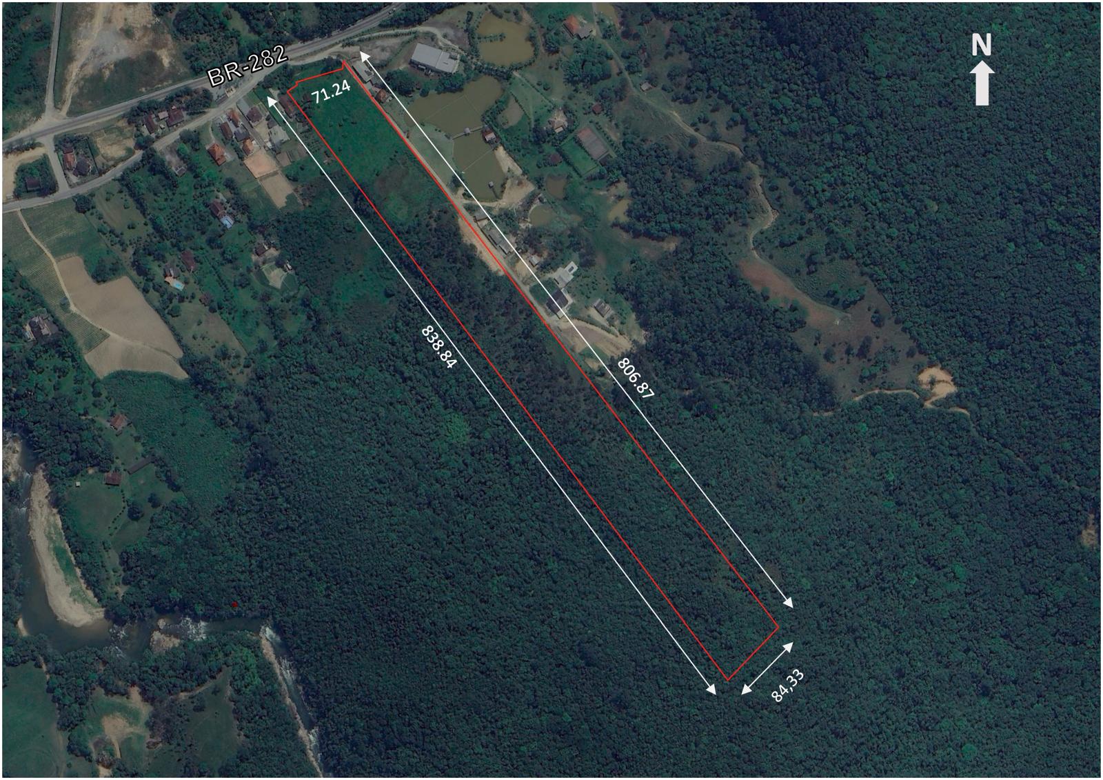 Terreno à venda com 6,3 hectares localizado em Águas Mornas às margens da BR-282 e a 19 km do Contorno Viário da BR-101.